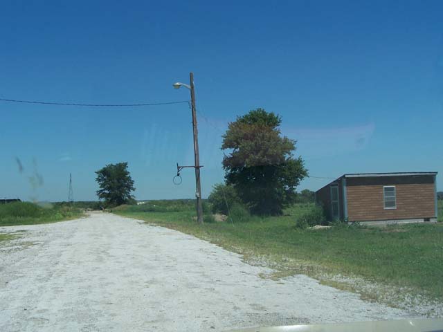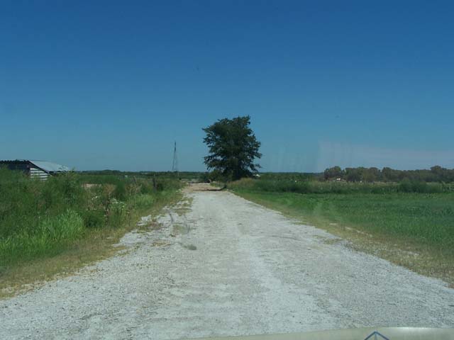 Road that leads to the site yeah the smidge is a bug on the windshield of the van I was in.